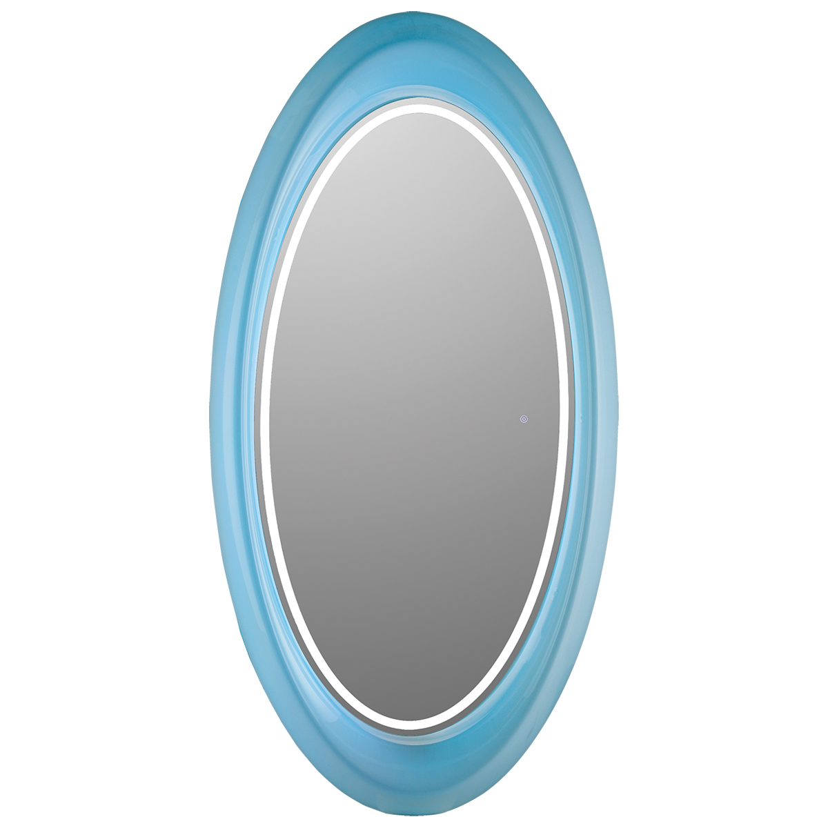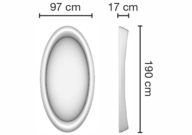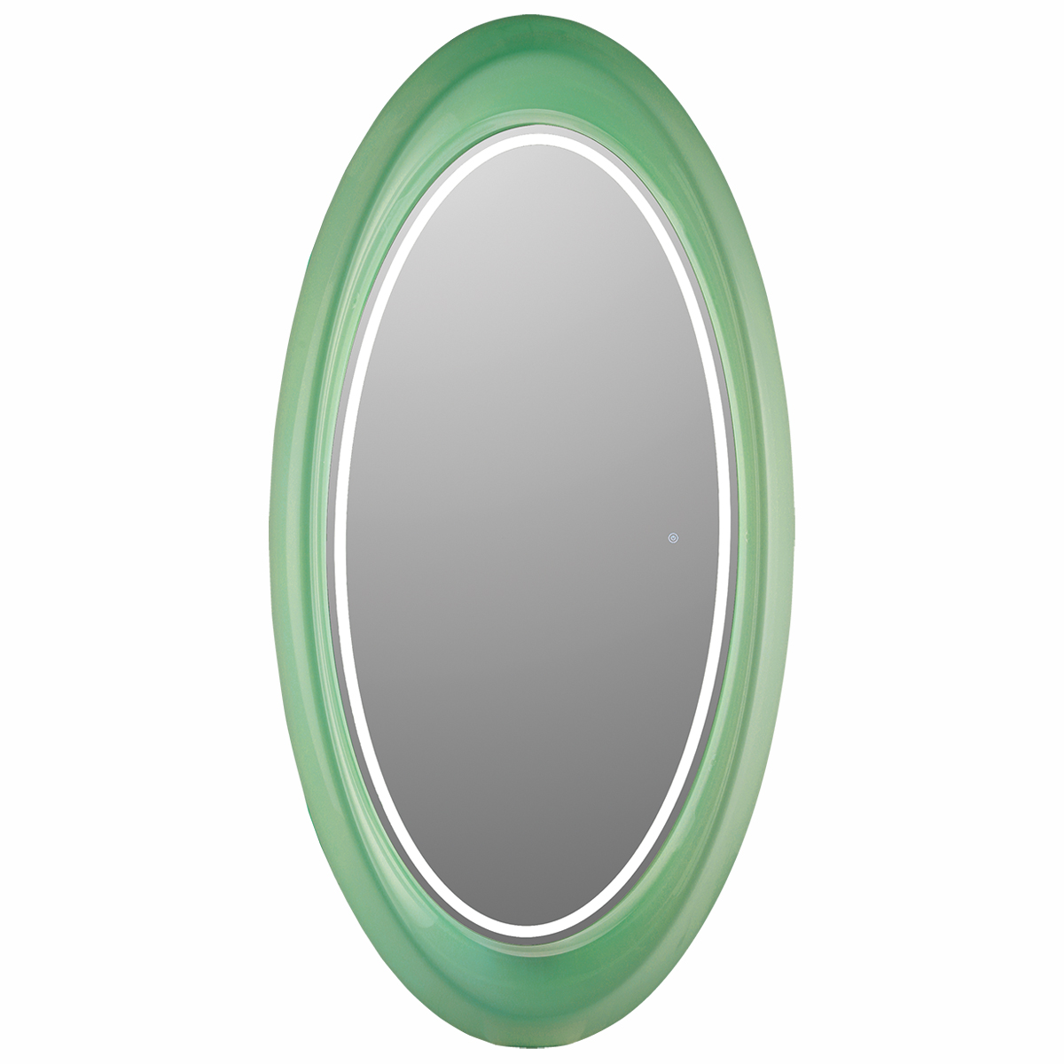 Зеркало парикмахерское одностороннее овальной формы. Зеркало оснащено светодиодной RGB LED подсветкой. Каркас выполнен из глянцевого пластика белого цвета. Крепление к стене.