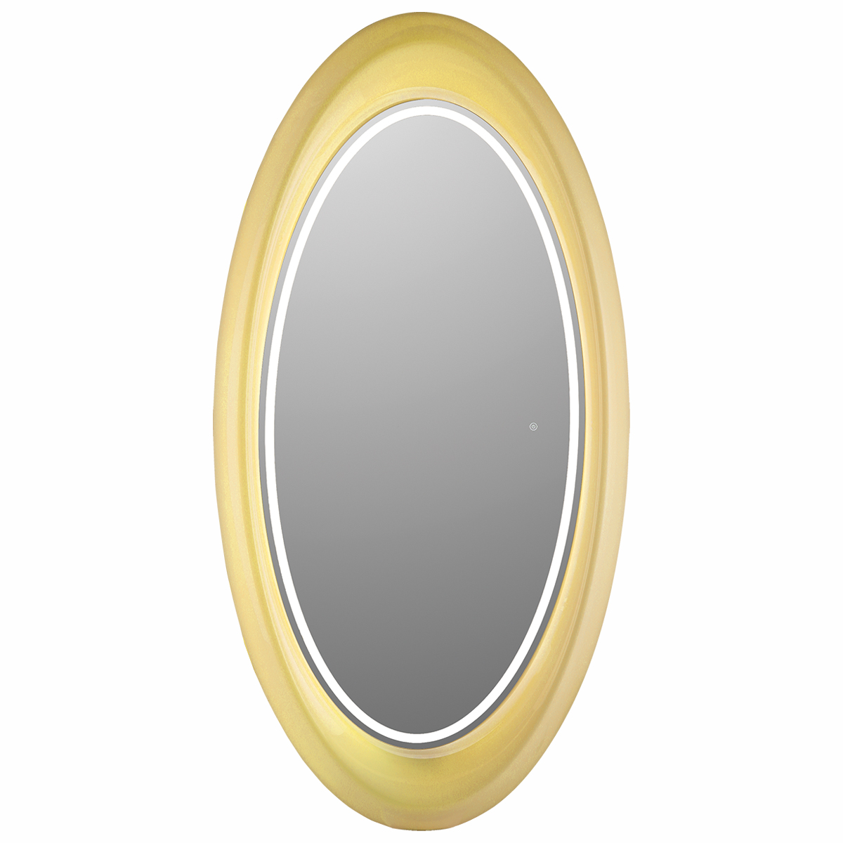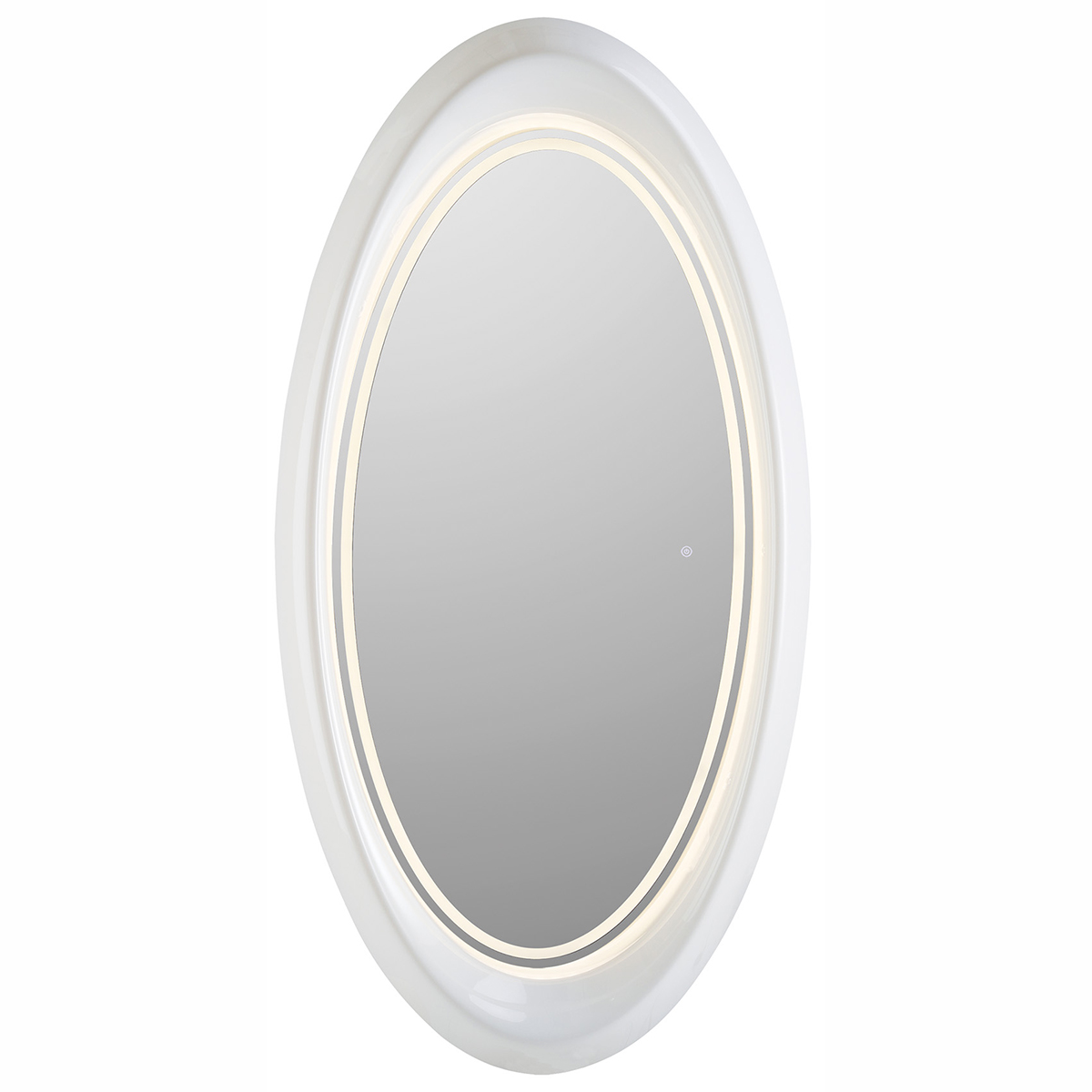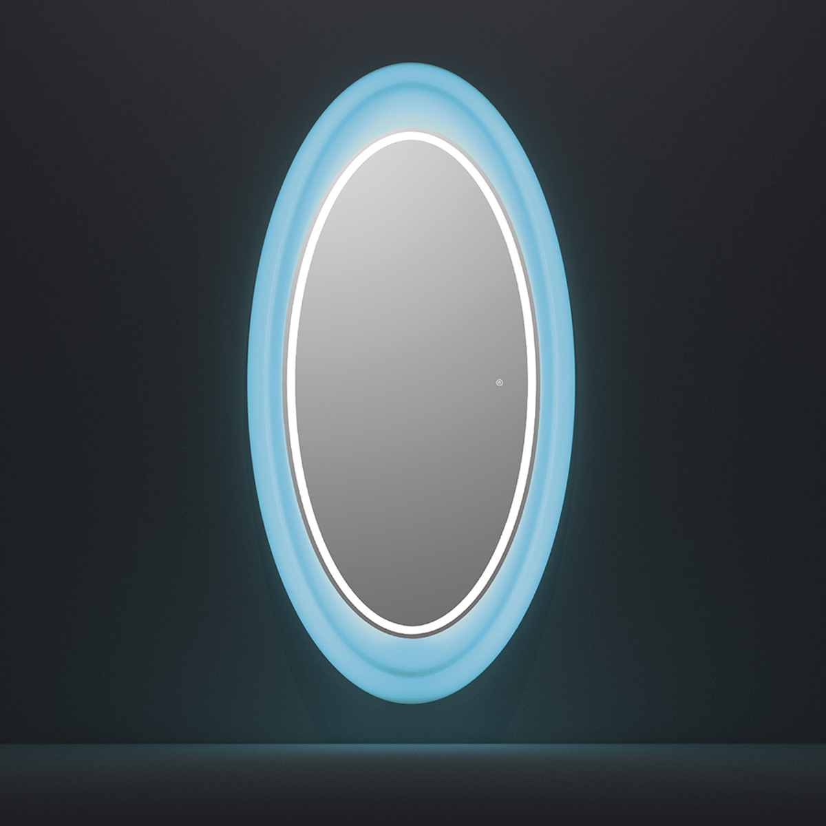 Зеркало парикмахерское одностороннее овальной формы. Зеркало оснащено светодиодной RGB LED подсветкой. Каркас выполнен из глянцевого пластика белого цвета. Крепление к стене.
