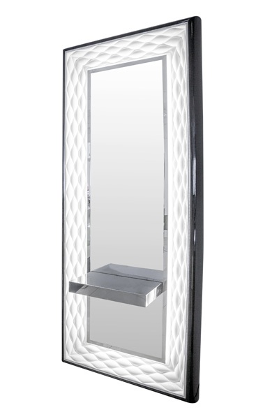 Зеркало парикмахерское с декоративной рамкой. Зеркало оснащено светодиодной подсветкой LED. Крепление к стене.