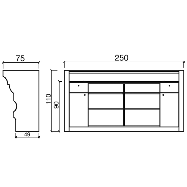 Размер (ДхШхВ): 250х75хH110 см