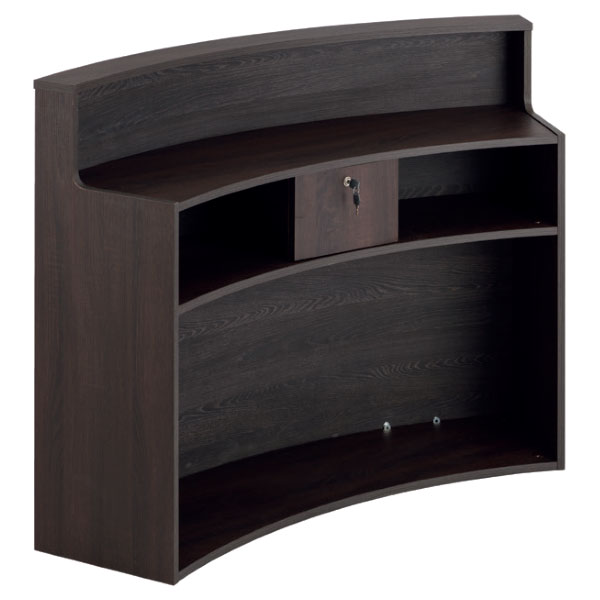 Стойка администратора оснащена выдвижным ящиком с ключом и нишами для хранения. Корпус и наполнение выполнены в ламинате.