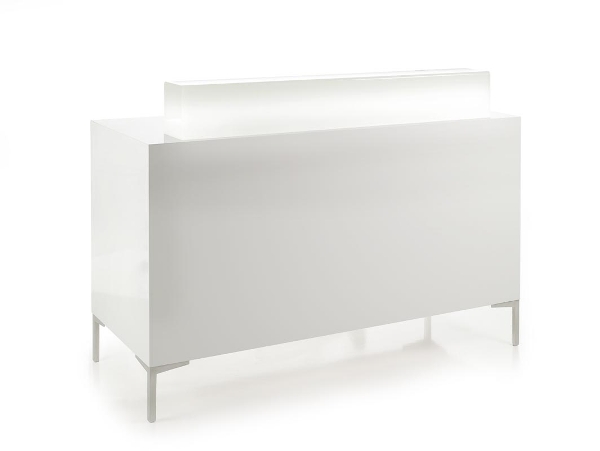 Стойка администратора. Выполнена в меламине. Стойка администратора оснащена дополнительной рабочей поверхностью из оргстекла белого цвета с подсветкой.