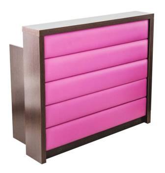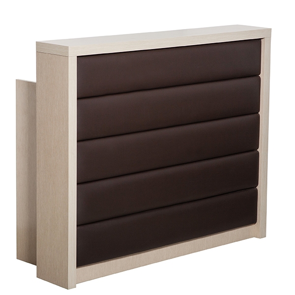 Стойка администратора прямоугольной формы с использованием полукруглых элементов.