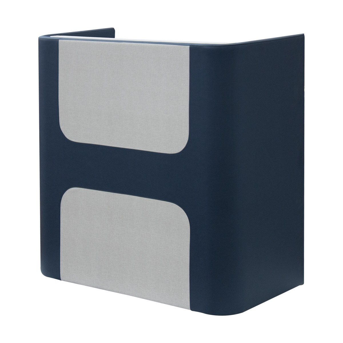 Стойка администратора прямоугольной формы с декоративной отделкой фасада из искусственой кожи. Корпус и наполнение выполнены в ламинате. Обивка - искусственная кожа высшего качества. Длина 100 см.