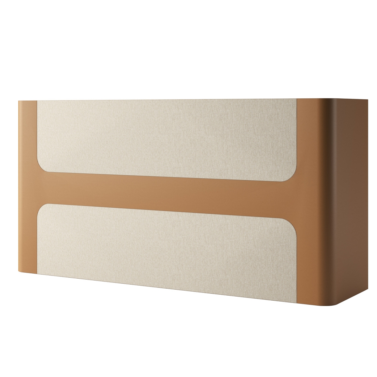 Стойка администратора прямоугольной формы с декоративной отделкой фасада из искусственой кожи. Корпус и наполнение выполнены в ламинате. Обивка - искусственная кожа высшего качества. Длина 180 см.