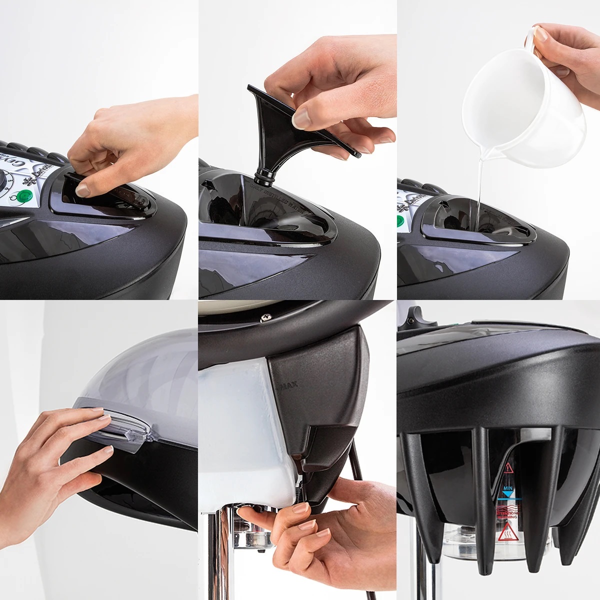 Вапоризатор GEYSER IONIC, ценность этого аппарата для салона красоты заключается в том, что вапоризатор позволяет не только многократно усилить воздействие на волосы любых компонентов, но и существенно сократить время проведения процедуры. Вапоризатор оснащен таймером, электронным регулятором температуры и количества пара, индикатором работы, резервуаром для конденсата и ионизатором. При заказе изделия на кронштейне: рекомендованная высота крепления - 200 см (от пола).