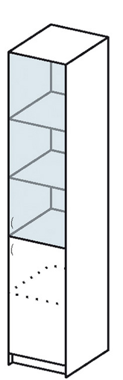 Шкаф №2 одинарный изготовлен из ламинированного ДСП со стеклянными дверцами. Размер (ДхШхВ): 45х40х200