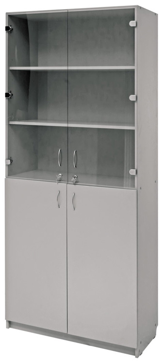Шкаф №2 двойной изготовлен из ламинированного ДСП со стеклянными дверцами. Размер (ДхШхВ): 90х42х200