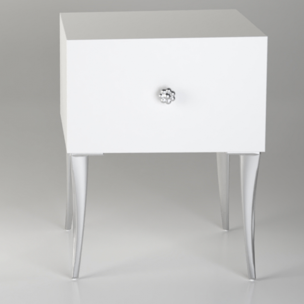 Напольная витрина с выдвижным ящиком. Витрина может быть выполнена из ламината или акрила. Витрина оснащена алюминиевыми ножками.