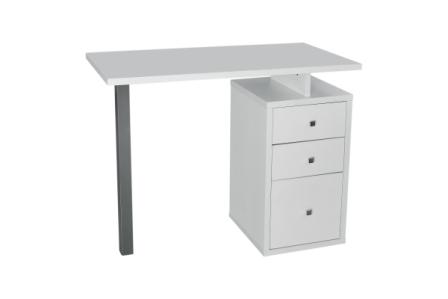 Маникюрный стол классического дизайна из ламинированного ДСП с квадратной ножкой и тумбочкой.