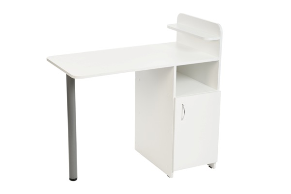 Маникюрный стол классического дизайна из ламинированного ДСП. Оснащен удобной подставкой для лаков.