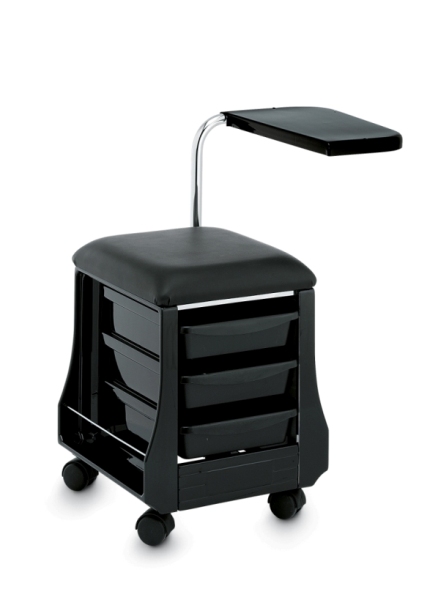 Стойка для экспресс-маникюра. Стойка маникюрная оснащена колесиками для удобства перемещения, тремя выдвижными ящиками и специальной полочкой которая регулируется по высоте. Каркас стойки выполнен из прочного пластика, мягкий элемент сиденья выполнен из искусственной кожи высшего качества.