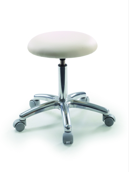 Низкий стул мастера 015 с бесшовной круглой сидушкой, оснащен пластиковым пятилучьем на колесах и газлифтом для регулировки высоты. Посадочное место – круглое.