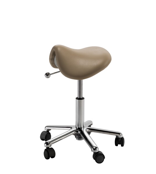 Стул мастера DEE оснащен алюминиевым пятилучьем на колесах и газлифтом для регулировки высоты. Посадочное место – в форме седла.