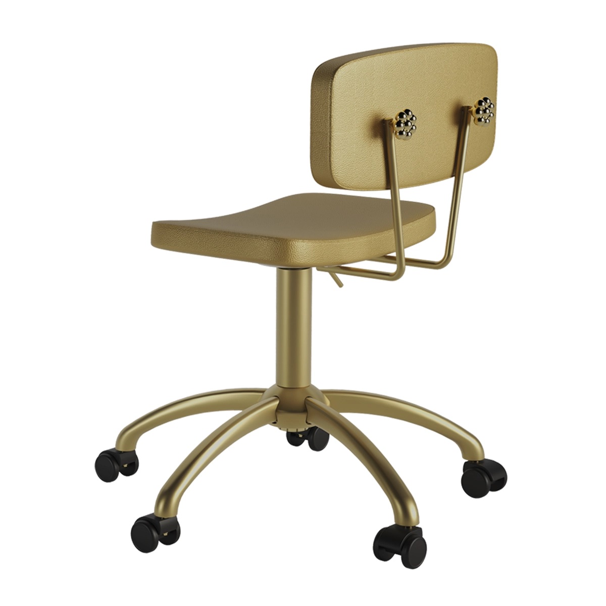 Cтул для мастера. Стул оснащен комплектующими окрашенными в единый цвет: пятилучье, газлифт, рукоятка регулировки высоты, а также дуги спинки с декоративными накладками. Комплектующие окрашены в золотой или черный цвет. Обивка - искусственная кожа высшего качества.