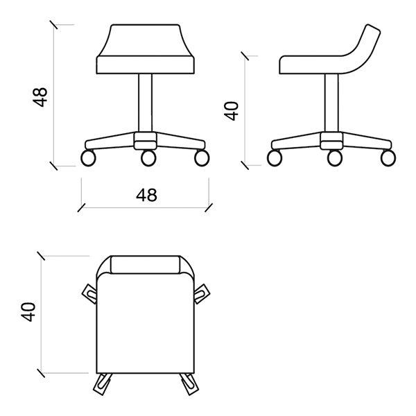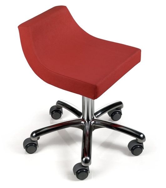 Низкий стул для мастера. Стул оснащен алюминиевым основанием в форме пятилучья с колесами и газлифтом для регулировки высоты. Рекомендован в кабинет педикюра. Обивка - искусственная кожа высшего качества.