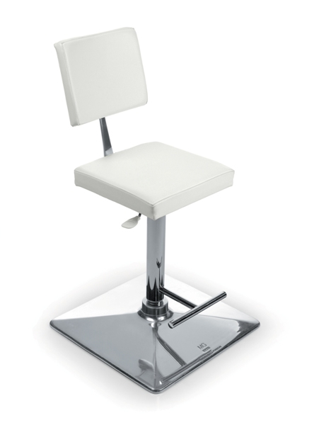 Стационарный стул мастера. Стул оснащен спинкой, алюминиевым основанием квадратной формы, подставкой для ног и газлифтом для регулировки высоты. Обивка - искусственная кожа высшего качества.