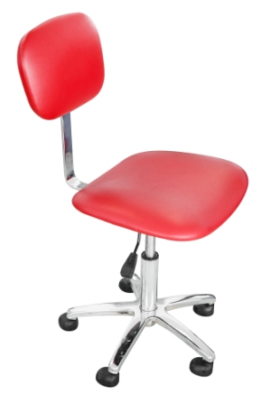 Стул классической формы с пневматической регулировкой высоты на хромированном пятилучье с колесами.