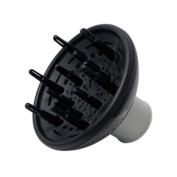 Крепится на фен снаружи. Мягкое силиконовое кольцо прочно фиксирует диффузор, не царапая корпус фена. Диаметр диффузора 140мм.