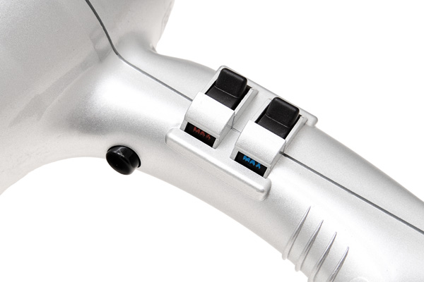 Благодаря использованию серебряных контактов в переключателях срок службы фена увеличен до 2000 часов работы.