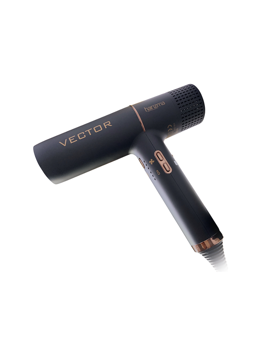 Фен VECTOR оснащен тремя настройками скорости и тремя настройками температуры для максимальной вариативности и кнопкой «моментального охлаждении» для фиксации результата.