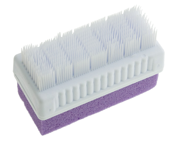 Щётка двухсторонняя применяется для чистки рук и для удаления остатков пыли при обработке ногтей. С помощью пемзы можно обрабатывать ороговевшие участки кожи.