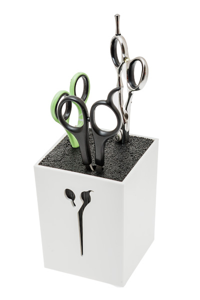 Удобная подставка для хранения парикмахерских ножниц.