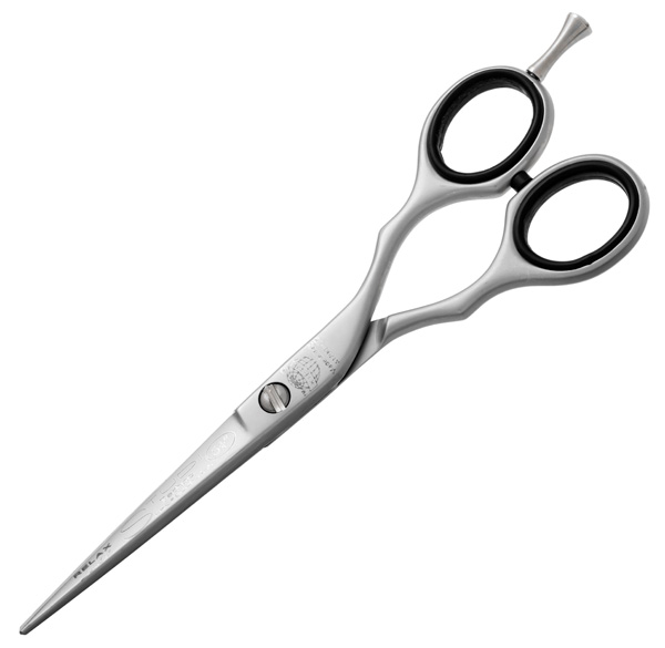 Ножницы прямые с односторонней насечкой эргономичной формы. Ножницы профессиональные для точного среза ; усилитель и ограничитель хода; регулируемый винт; сменные кольца (регуляторы размера из мягкого пластичного материала) делают наиболее удобным использование ножниц.