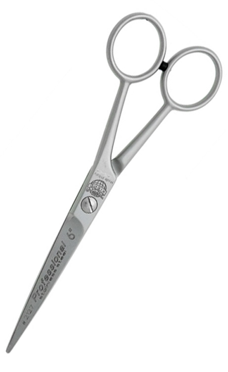 Ножницы прямые Professional 6". Ножницы классической формы цельнометаллические (итальянская сталь) с ограничителем хода, с односторонней микронасечкой и регулируемым винтом.
