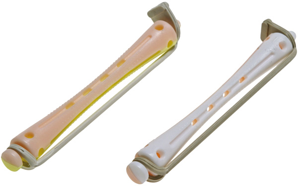Коклюшки 6,5 мм длинные бело-розовые для химической завивки, 12 штук в упаковке. Изготовлены из высококачественного материала, стойкого к химическим составам.