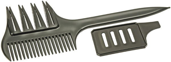 Страйпер для мелирования. Используется при мелировании.>br /> Одна сторона с редкими зубцами для расчёсывания и распутывания волос перед мытьём и после него. Другая сторона с короткими и частыми зубцами - для моделирования контуров и оформления плавных переходов, например в затылочной зоне.
