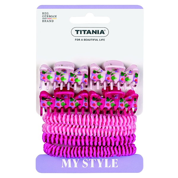 В состав набора входят 4 цветные заколки-«крабик» и 4 плотные резинки в тон.
