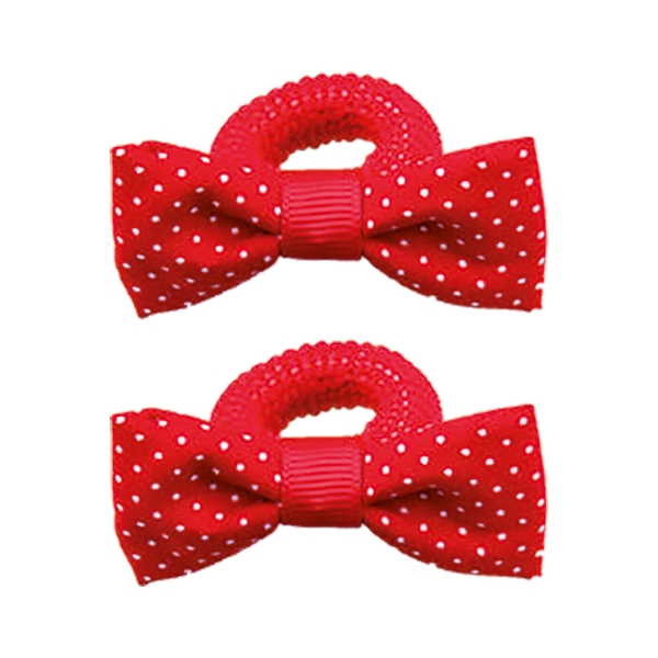 Набор из двух плотных махровых резинок с симпатичным бантиком в мелкий горошек.