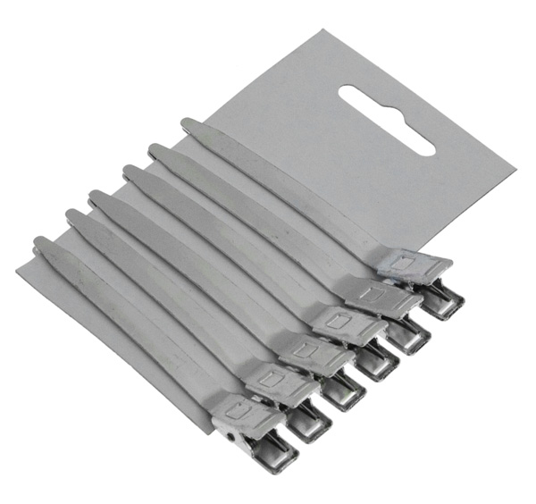 Зажимы для разделения прядей изготовлены из металла длина 8,5 см, 6 штук на карте.