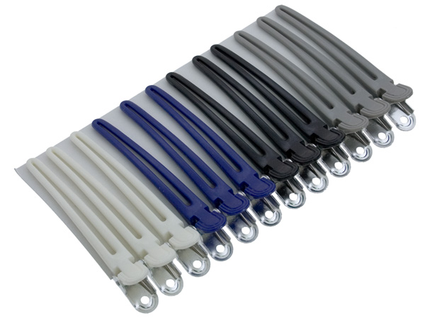 Зажимы цветные комбинированные для разделения прядей изготовлены из алюминия и пластика, длина 10 см, 12 штук в упаковке.