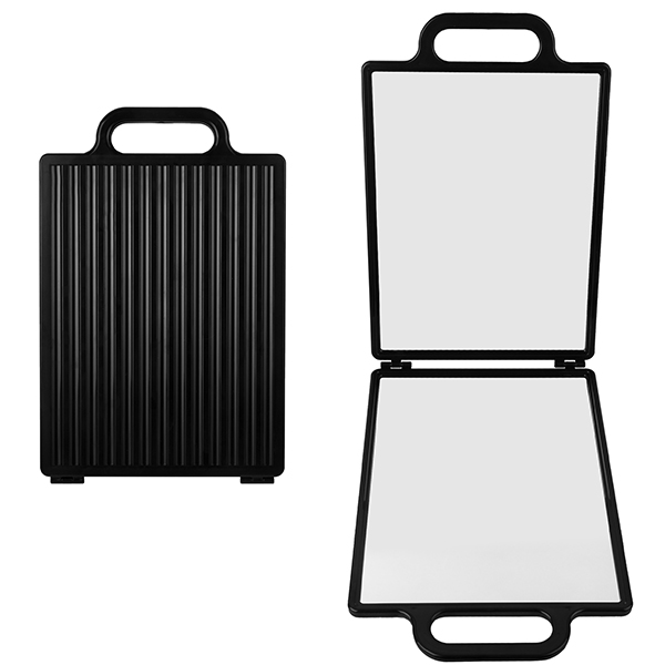 Профессиональное зеркало заднего вида служит для демонстрации клиенту стрижки или укладки затылочной части головы. Широкая поверхность зеркала и меняющийся угол отражения обеспечивают отличный обзор, а складная конструкция позволяет удобно хранить и транспортировать его. Изготовлено из акрила и пластика, безопасно в использовании.