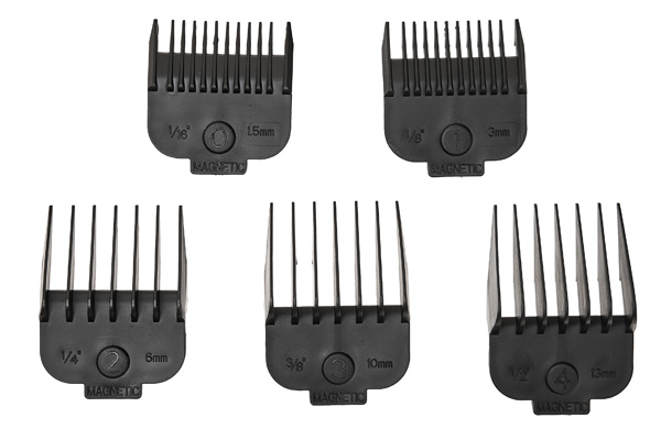 Магнитные гребни для парикмахерских машинок были разработаны для профессионального использования. Эти насадки надёжно фиксируются на ноже машинки с помощью встроенного магнита и представлены в различных размерах для прецизионного фейдинга: 1.5/ 3/ 6/ 10 и 13 мм.