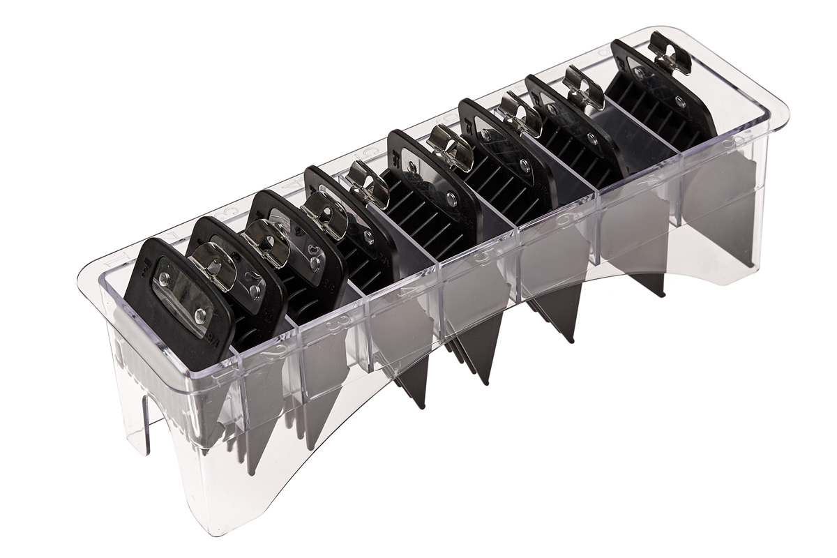 Набор универсальных насадок с металлическим креплением для парикмахерских машинок. Подходят к большинству современных парикмахерских машинок для стрижки волос с большим рабочим ножом 45х35мм.