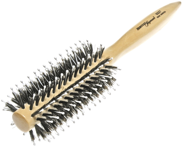 Брашинг 54 мм на деревянной основе с натуральной щетиной и специальными наконечниками из термостойкого полиамида для идеального качества расчёсывания.