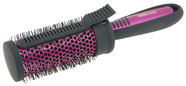 Термобрашинг 48 мм с керамическим основанием, ручкой из мягкого пластика и зажимом для пряди волос.