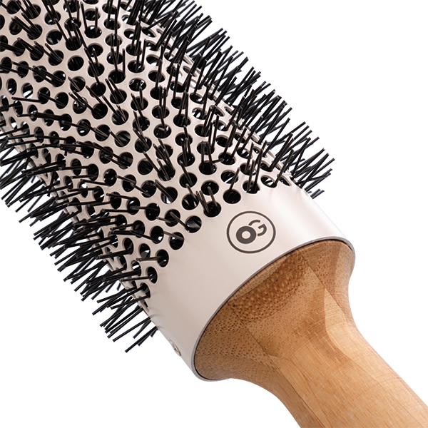 Высококачественный экологичный термобрашинг из натурального бамбука от Olivia Garden. Щетина изготовлена из специального термостойкого нейлона и "заряжена" отрицательными ионами. В совокупности с керамической рабочей поверхностью брашинга это обеспечивает мягкую и бережную укладку.