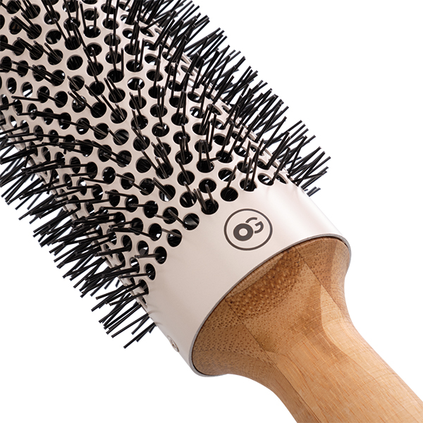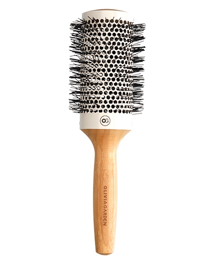 Высококачественный экологичный термобрашинг из натурального бамбука от Olivia Garden. Щетина изготовлена из специального термостойкого нейлона и "заряжена" отрицательными ионами. В совокупности с керамической рабочей поверхностью брашинга это обеспечивает мягкую и бережную укладку.