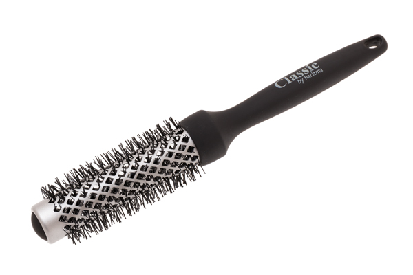 Термобрашинг для волос 25мм с керамико-турмалиновым покрытием позволяет быстро и бережно уложить волосы, благодаря равномерному распределению тепла по металлической поверхности. Щетина из термостойкого нейлона выдерживает нагрев до 280 градусов. Частицы турмалина ухаживают за волосами и ускоряют процесс укладки излучая отрицательные ионы непосредственно в волосы. Комфортная ручка с покрытием Soft Touch.
