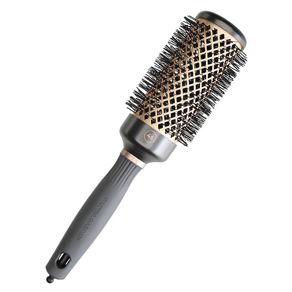 Сверхтермостойкий брашинг Heat 45 мм с медно-керамическим покрытием. Медно-керамическое покрытие Copper Ceramic Technology увеличивает скорость нагрева поверхности брашинга в 2 раза. Крупные вентиляционные отверстия уникальной формы в корпусе ствола и крышки брашинга обеспечивают улучщенную циркуляцию горячего воздуха для более очевидного и устойчивого результата укладки.