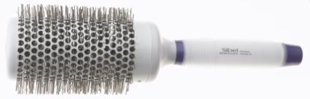 Термобрашинг 53 мм с турмалиновым покрытием и щетиной из термостойкого нейлона. Частицы турмалина ухаживают за волосами в процессе укладки, а силиконовая ручка термобрашинга не позволяет соскальзывать руке мастера во время работы.