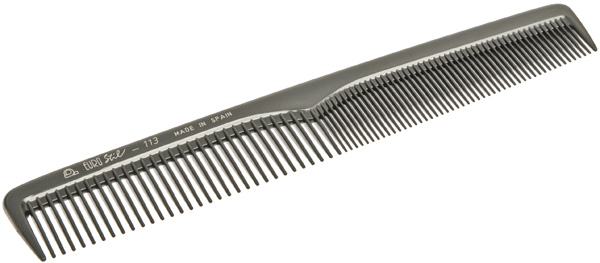 Расческа из пластмассы с частыми и редкими зубчиками.