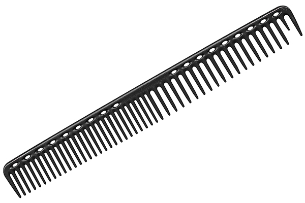 Особая редкозубая длинная карбоновая расчёска для стрижки, длина 228мм, для базовой и креативной техники. Зубцы идеально круглой формы, без заусенцев и повреждений, проходят сквозь волосы так же мягко, как человеческие пальцы, не повреждая волосы и не травмируя кожу головы. При этом создаётся более естественное натяжение пряди волос и намного более качественная и аккуартная стрижка.