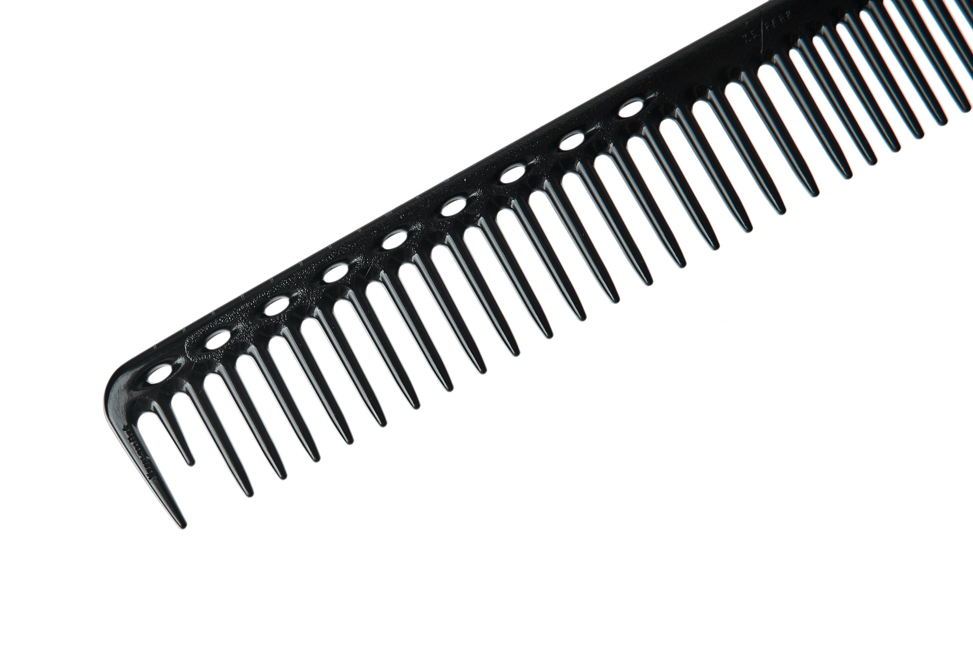 Особая редкозубая длинная расчёска для стрижки, длина 230 мм, для базовой и креативной техники. Для высшей точности работы на обушок нанесена разметка, позволяющая измерить точную длину обрабатываемого участка пряди в сантиметрах. Зубцы идеально круглой формы, без заусенцев и повреждений, проходят сквозь волосы так же мягко, как человеческие пальцы, не повреждая волосы и не травмируя кожу головы. При этом создаётся более естественное натяжение пряди волос и намного более качественная и аккуартная стрижка.