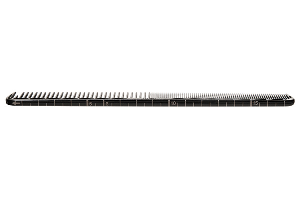Самая популярная многофункциональная расчёска для стрижки с рельефным обушком, длина 180мм, для базовой и креативной техники. Для высшей точности работы на обушок нанесена разметка, позволяющая измерить точную длину обрабатываемого участка пряди в сантиметрах.