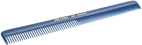 Расческа комбинированная узкая синяя с частыми и средними зубьями. Подходит для тонких и средних волос.